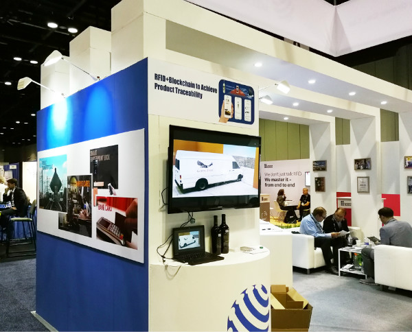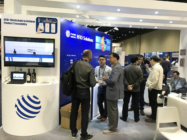 同時,結(jié)合產(chǎn)品的實際應用場景,展臺也進行了案例演示。觀眾對我司卓越穩(wěn)定的產(chǎn)品性能和綜合應用解決方案有了全方位的了解。在跨境商品防偽溯源領(lǐng)域,我司展示了將PUF(物理不可克?。┓纻喂δ艿腞FID標簽與區(qū)塊鏈結(jié)合的創(chuàng)新方案。參觀者在現(xiàn)場通過NFC手機掃描貼在產(chǎn)自加州納帕谷酒莊的紅酒上的RFID標簽,就能接收到該酒的認證信息,了解該酒的特點及完整的物流信息。據(jù)悉,這是全球首例將RFID與區(qū)塊鏈結(jié)合應用于跨境商品流通的真實案例。