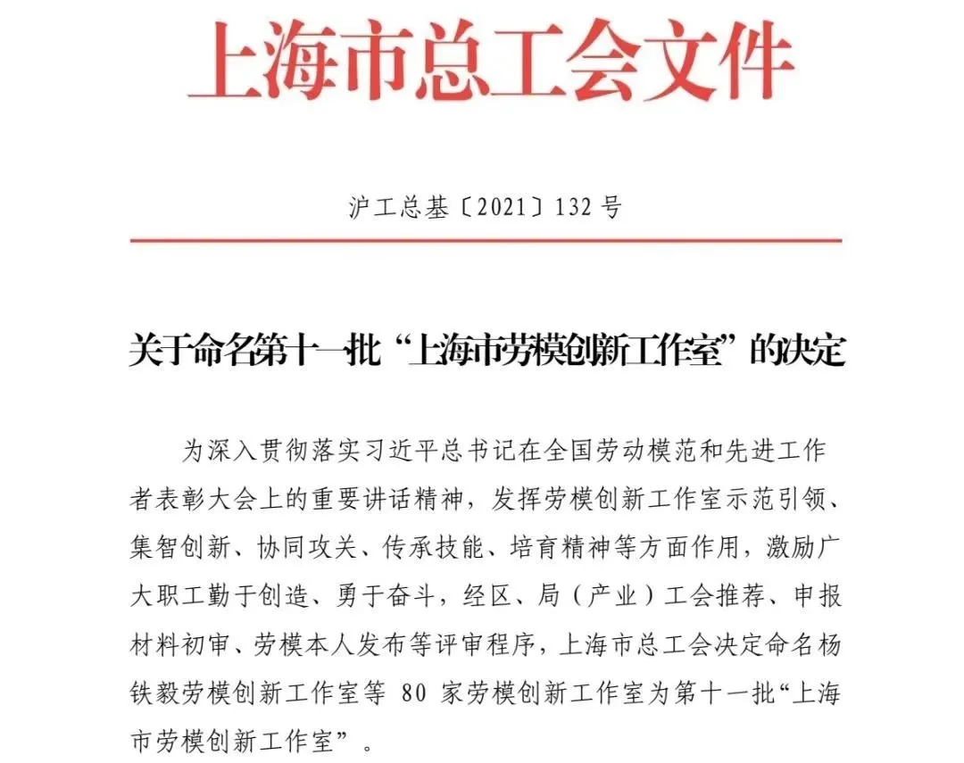 楊浦區(qū)勞模創(chuàng)新工作室揭牌